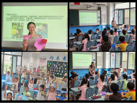 课堂上,这位“家长老师”从孩子们最熟悉的日常生活场景出发,用通俗易懂的语言和丰富多彩的图片,介绍了小区里、马路旁、公园中常见的植。“我知道!那是月季!”、“我家里也养过富贵竹!”孩子们争先恐后地举手发言,结合自己的生活观察与“家长老师”积极互动。活动现场还展示了吊兰,孩子们通过看一看、摸一摸、闻一闻,零距离感受了自然的奇妙,对身边的植物朋友有了更深刻的认识。
