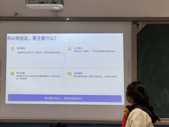 最后,班会聚焦“和AI做朋友要注意什么”,通过讨论明确了保护隐私、辨别信息真伪、不依赖AI完成作业等重要原则。此次班会不仅让同学们直观感受了AI的魅力,拓宽了科技视野,更培养了大家科学使用AI的意识,在心中种下了崇尚科技、勇于探索的种子。